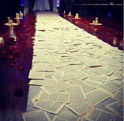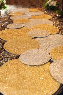 Например, рассмотрим дорожку, которая ведёт к арке. Многие представляют это как традиционно усыпанная дорожка лепестками роз или просто натянутый кусок белой ткани, но мы же не ищём простых и банальных путей :) Даже лепестками роз можно создать шедевр, если применить творческий подход.